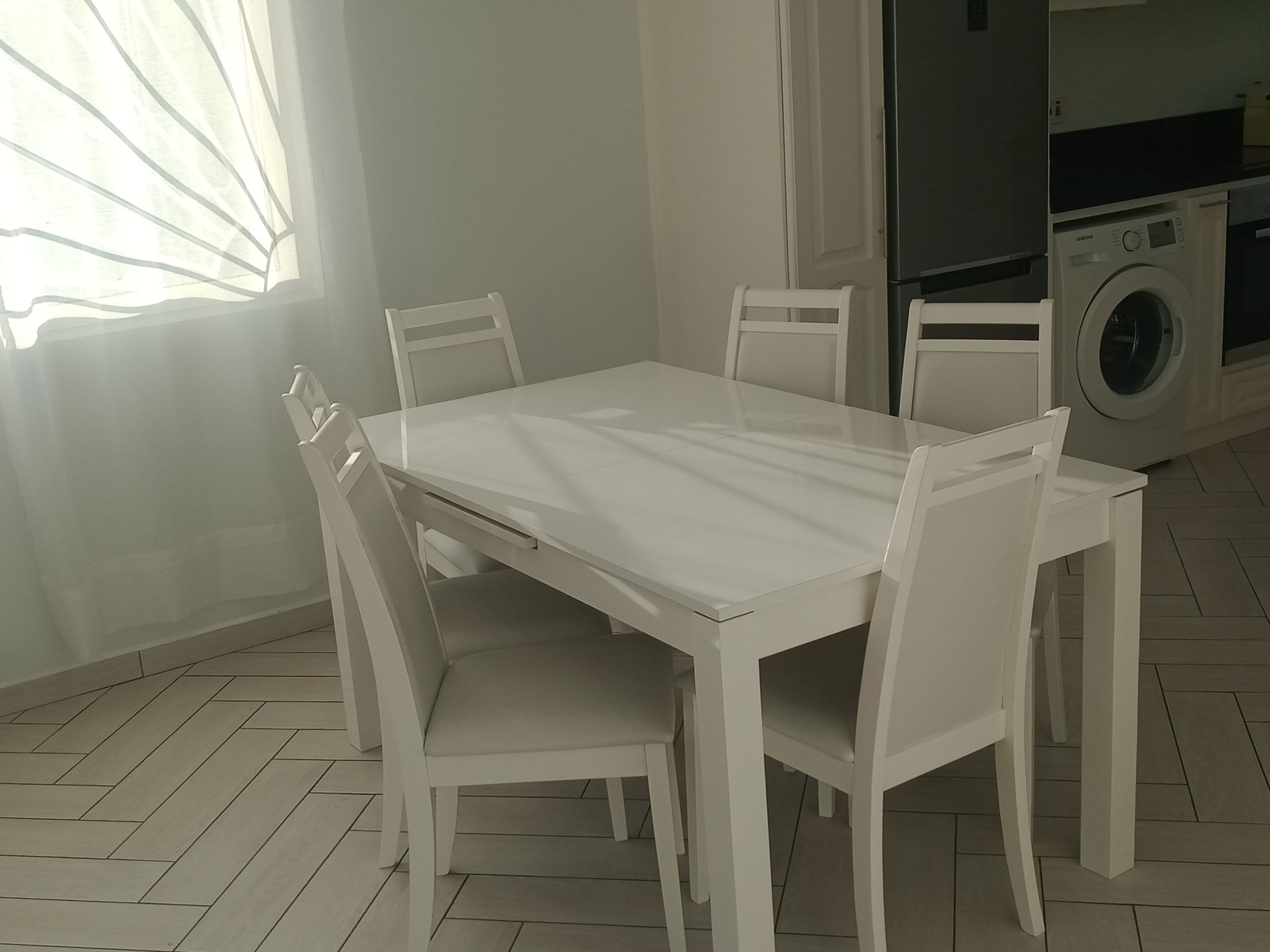 Chambres 2, Salon, Table à diner 6 chaises, Placards rangement, Téléviseur, Cuisine équipée, Douche, toilette, lave-linge, lave vaiselle.